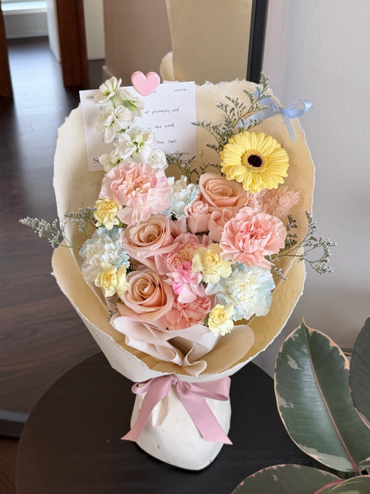 Our 2026 Mother’s Day Collection is thoughtfully curated in soft, warm tones and seasonal blooms, celebrating love in its most gentle form. From delicate blush palettes to timeless whites and garden-inspired arrangements, each bouquet is designed with intention — natural, elegant, and quietly expressive. More than just flowers, these pieces are a reflection of gratitude, warmth, and the beauty of everyday moments.