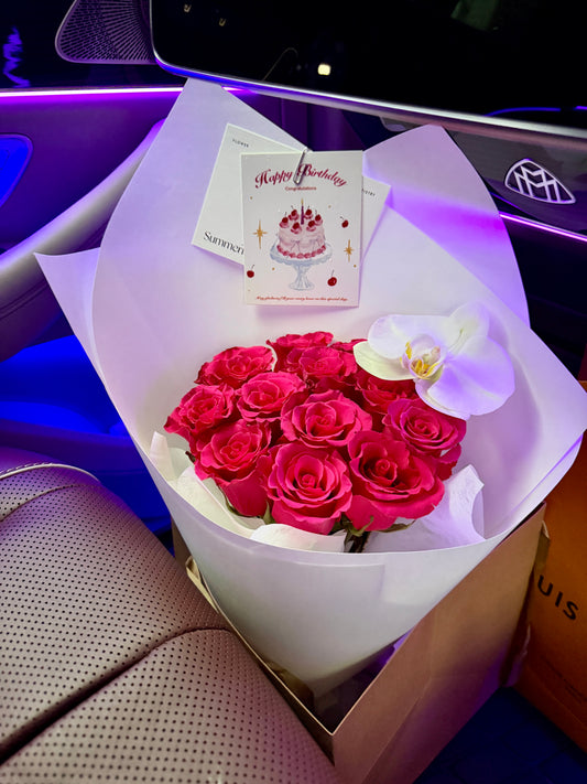Hot Pink Rose Bouquet with Orchid