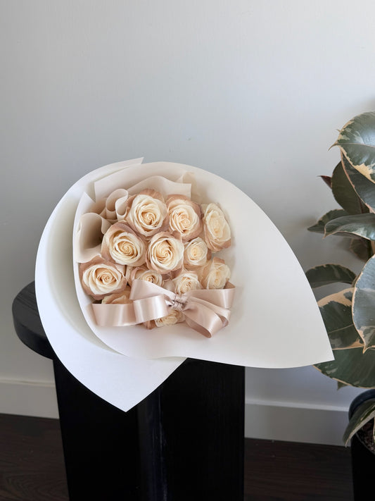 Tinted Cappuccino Rose Bouquet with Ribbon