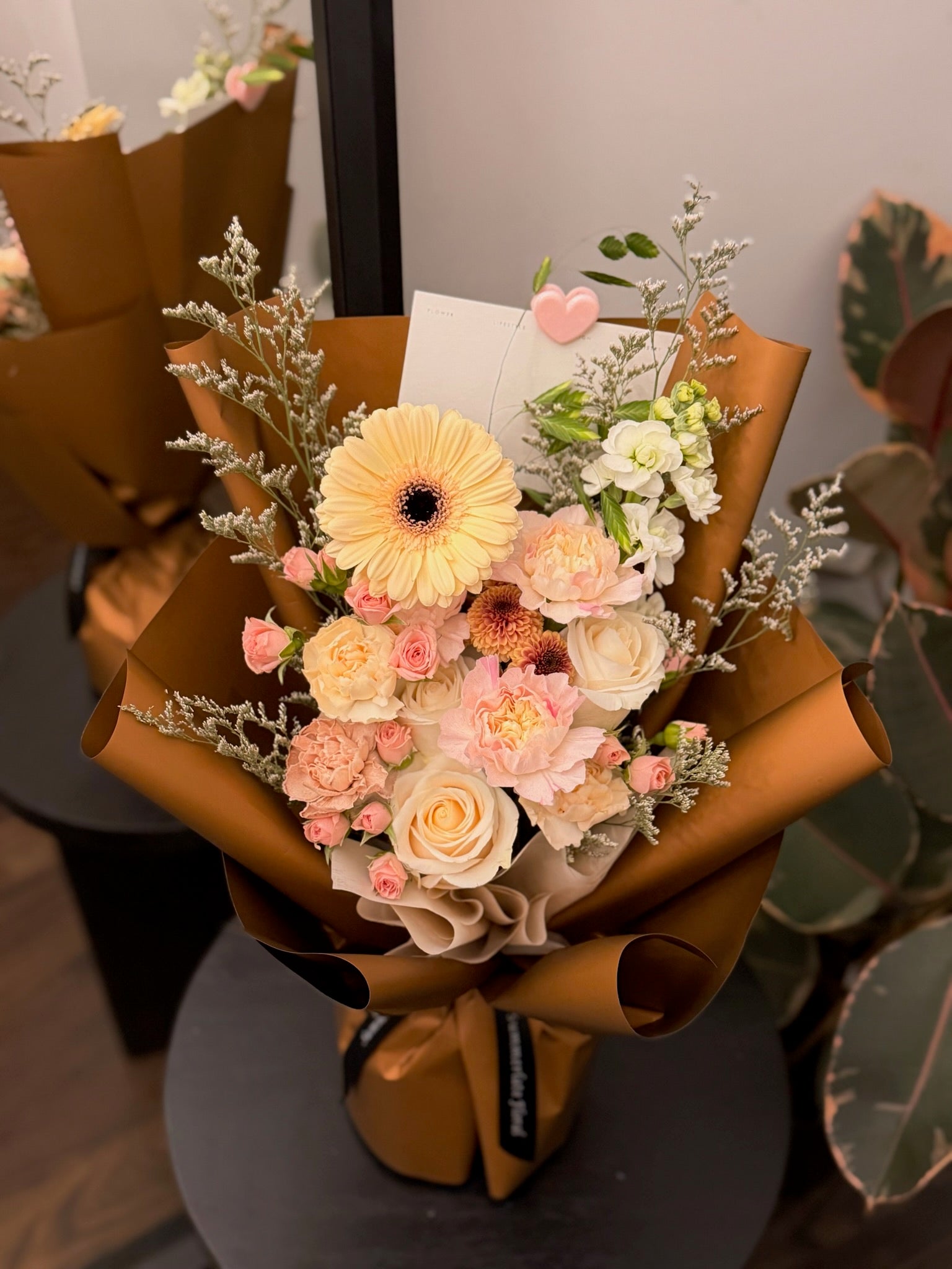 Due to the changing seasons and availability of flowers, some substitutions might be necessary. We’ll do our best to keep the bouquet’s size, shape, and color scheme as close to the original as possible. If any changes are needed, they’ll be carefully selected to ensure the bouquet remains stunning and true to the overall design.